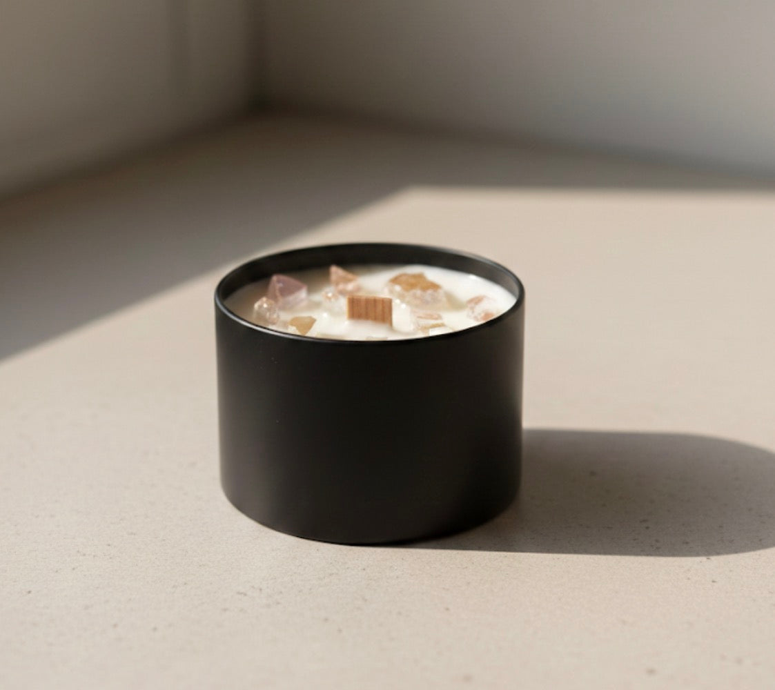 Filled with 8 ounces of premium wax, each candle features a hand placed wood crackling wick and is delicately finished with rose pink crystals for a soft, luminous glow. Designed to elevate any space, this piece blends warmth, beauty, and intentional detail into a truly luxurious burn.